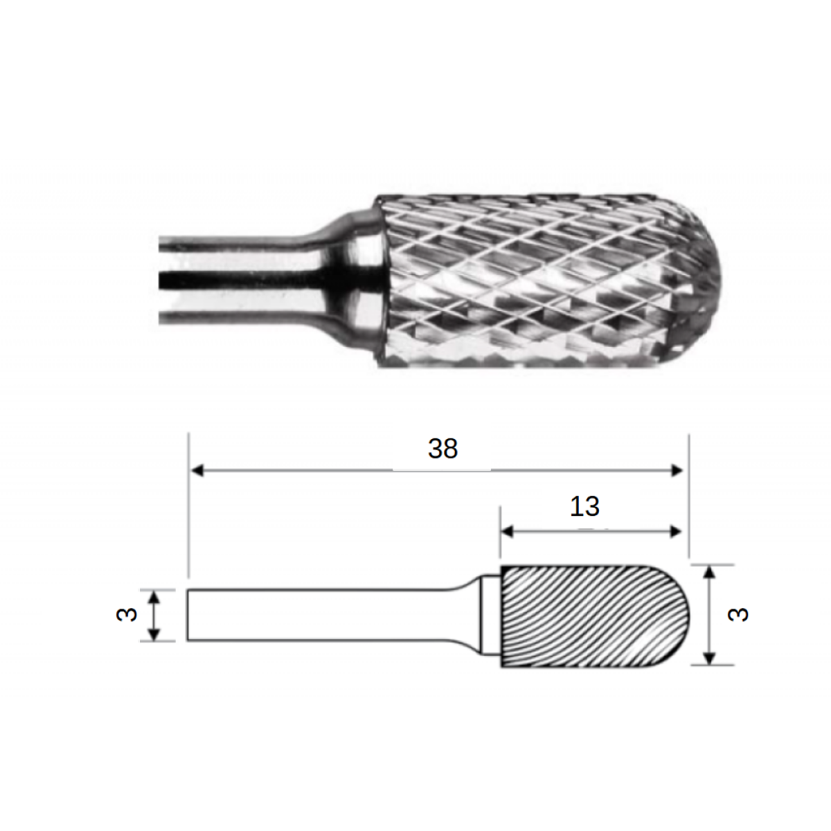 Діаметр циліндричного хвостовика 3 мм.