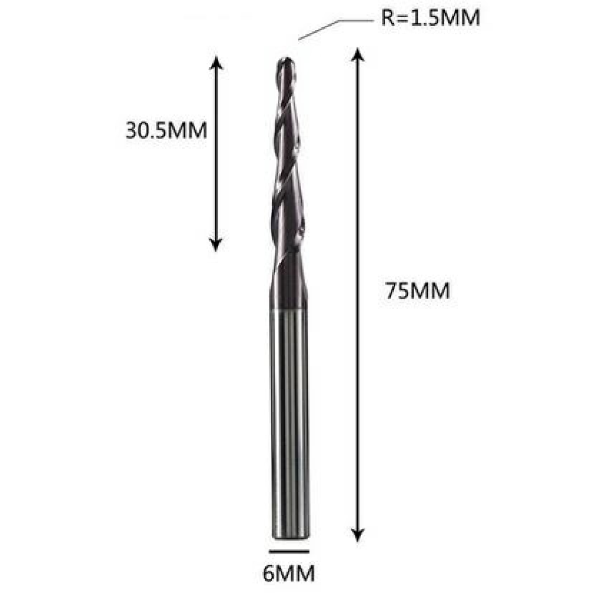 Фреза конусна для ЧПУ R1,5-D6-L75-l30,5