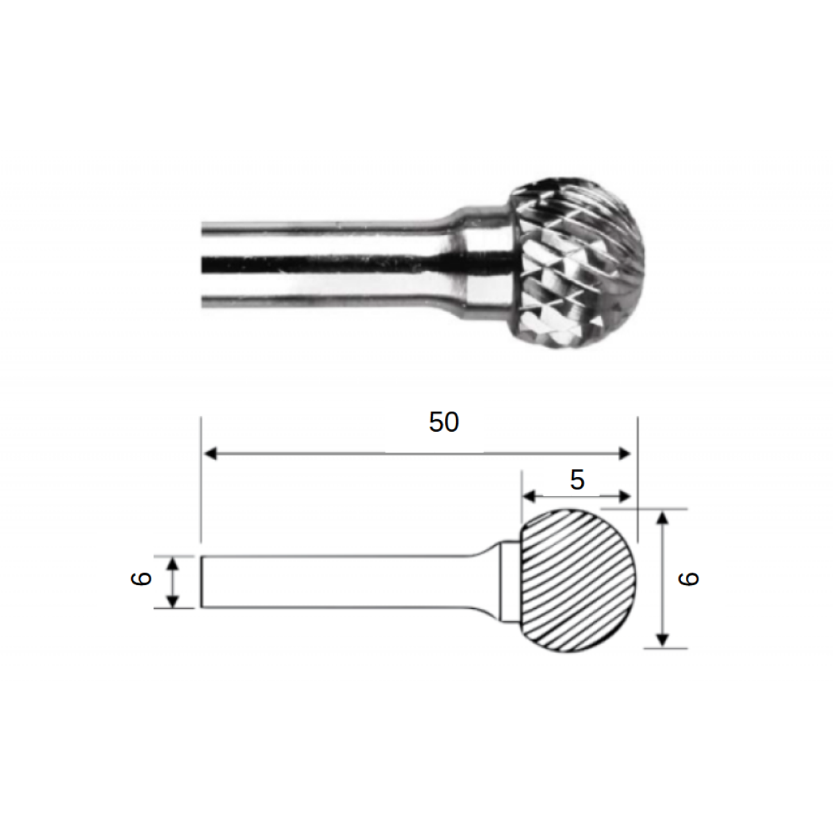 Твердосплавна борфреза тип D кулястої форми. Підходить для зняття грата, зачистки зварних швів, обробки контурів, зачищення внутрішніх отворів металевих заготовок, а також фрезерування важкодоступних місць.