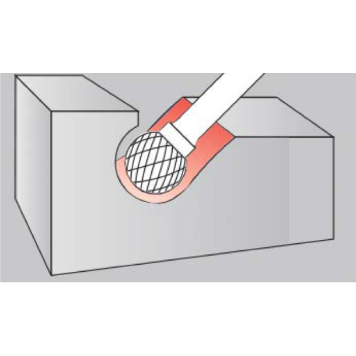 Твердосплавна борфреза тип D кулястої форми. Підходить для зняття грата, зачистки зварних швів, обробки контурів, зачищення внутрішніх отворів металевих заготовок, а також фрезерування важкодоступних місць.