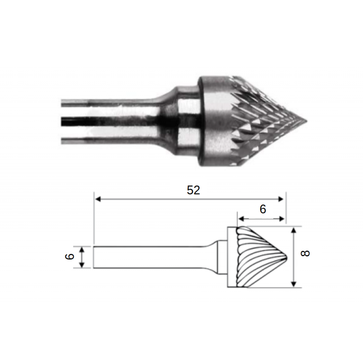 Діаметр циліндричного хвостовика 6 мм.